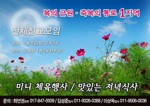 1지역 전체 친교 모임(미니 체육대회) : 8일(토), 오후 3시 유치부실(교육관1층)