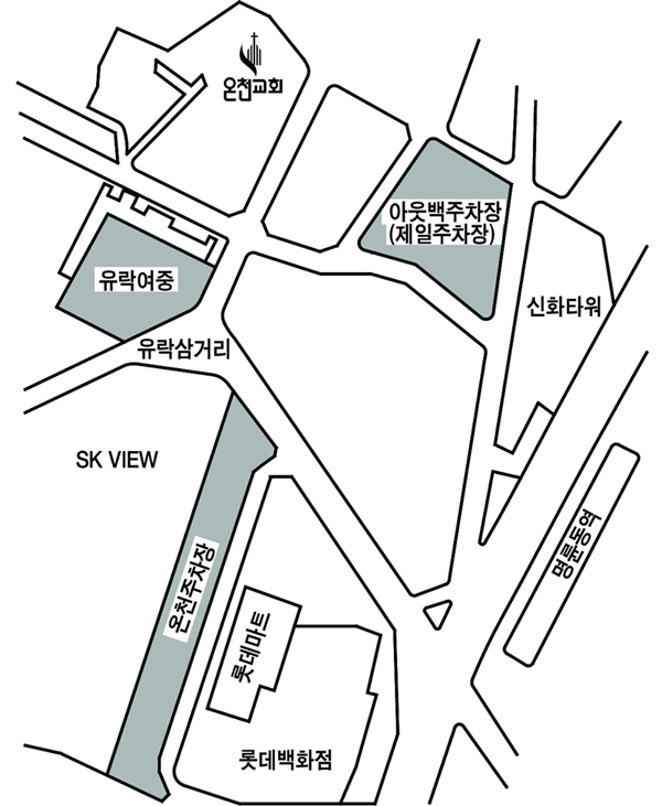 현재 유락여중 운동장을 주차장으로 사용하고 있습니다만, 비가 오는 주일날이면 유락여중에 주차할 수 있는 공간이 현저히 부족하므로 이와 같은 불편을 해결하기 위해 주차부에서는 교회 주위에 유료주차장(두 군데를)을 준비했습니다. 교육관 공사가 끝날 때까지 자동차로 교회에 오는 성도님의 원만한 이해와 협조가 절실히 필요합니다. 감사합니다.