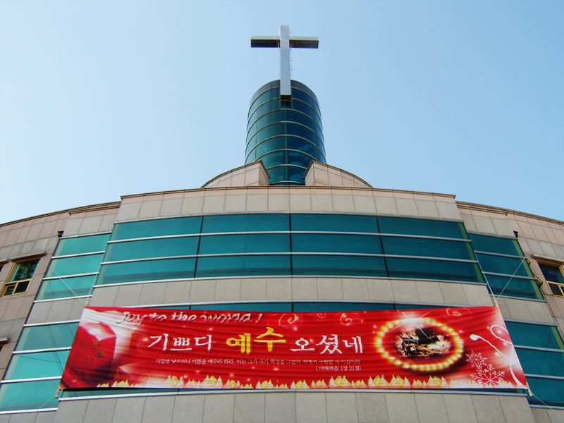 신선한 아이디어입니다. 조명을 쏘아서 교회홍보에 힘쓰시는 모습이