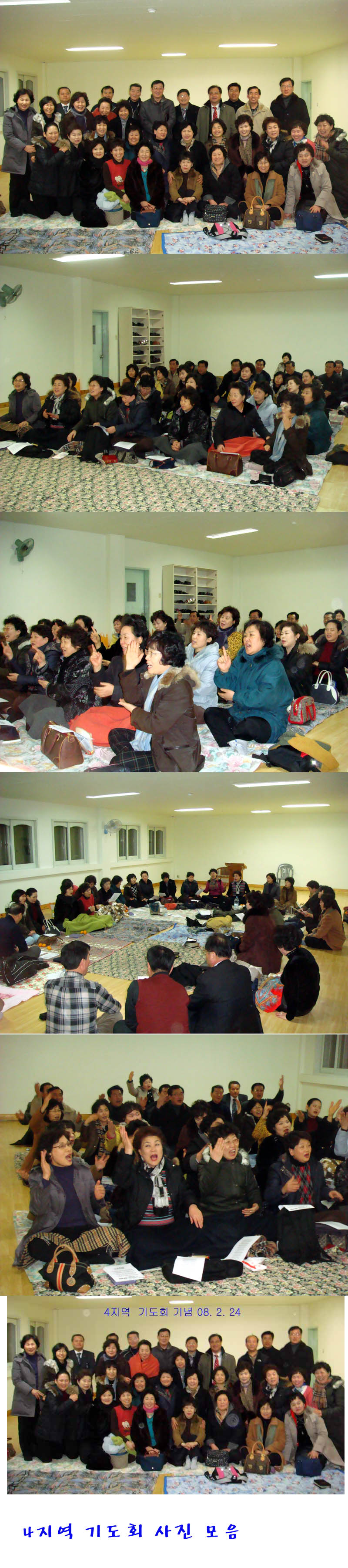 형통한 4지역 성공한 4지역은 08년 2월 14일 오후 7시부터 11시까지 김경영목사 인도로 교구장로 권사 권찰 남자순장 여자순장 남.여전도회임원 32명이 경남 양산소재 감림산기도원에서 은혜로운 기도회를 갖었다.