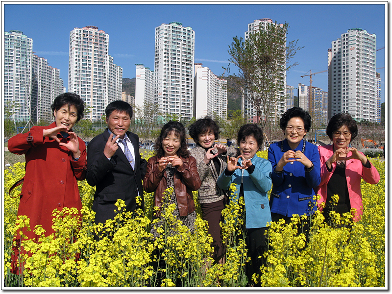 만덕구역 식구들이 구역예배를 마치고 아름다운 유채꽃밭에서