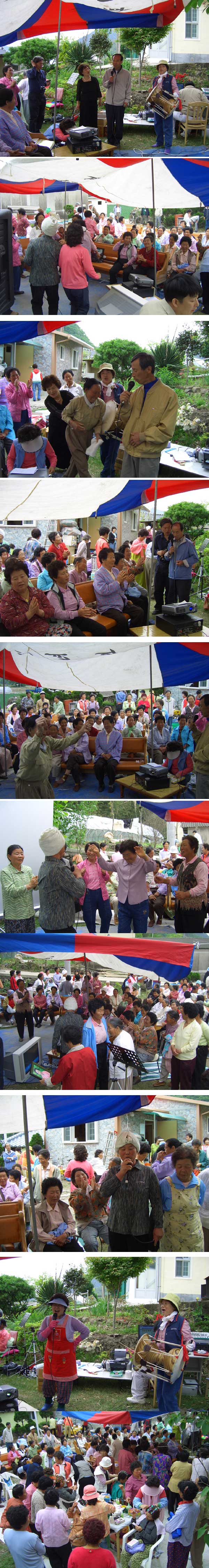 박숙자집사의 노인대학교 총무 관록의 명 사회와 김방자권사의 장구에 마추어 멋진 노래가락에 마을 주민 홀닥 반했습니다. 강영자권사의 간드러진 목소리에 온 동래가 화할짝 웃음으로 피어나고 마을 어른들이 돌아갈 생각을 잊었습니다.
