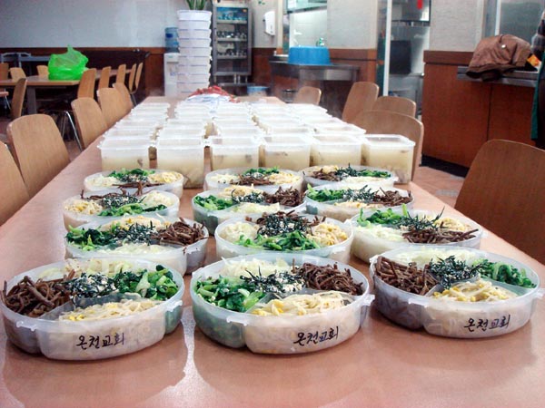 온천 1.2동 40여가구 거동이 불편하신 이웃을 찿아 밤세워 정성껏 준비한 나물류 반찬통과 탕국통과 떡국을 온천교회 이름으로 주님의 사랑과 함께 나누어 드렸다.