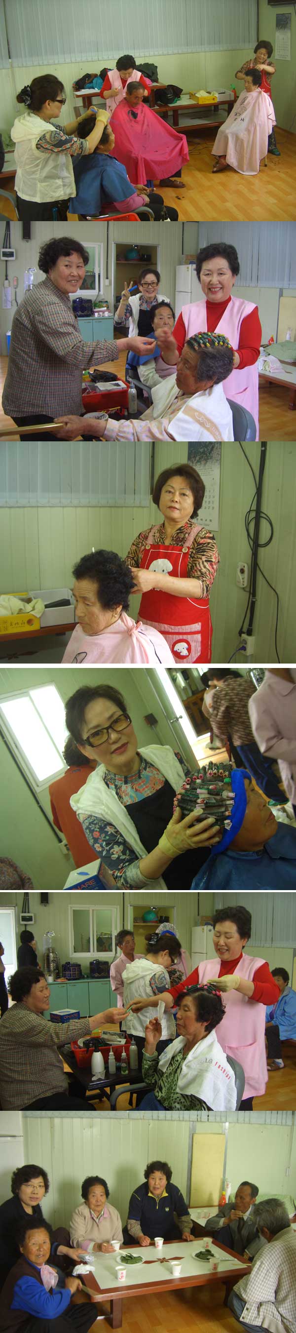 식사할 겨를도 없이 힘든 작업이였지만 미용봉사자들의 얼굴에는 웃음으로 가득하여 보는이들로 천사같다고 칭찬이 자자하여