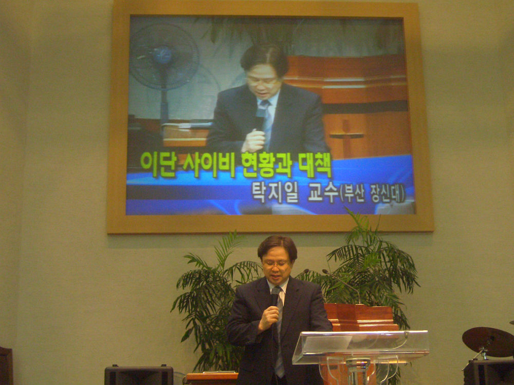 (신천지산옮기기전도전략) 오후예배 탁지일교수(부산장신대학교)의 "이단 사이비 현황과 대책"에 관한 강의는 아름다운 신앙의 공동체 온천교회성도님들에께 꼭 알아야할 유익한 시간이였다. 부친 되시는 "현대종교" 고 탁명환소장님께서 돌아가시전에 온천교회 오시어서 이단에 대한 강의하신일이 참 잊허지지 않는데 또 아드님을 세우사 사악한 이단들의 실체를 세상에 알리는 파숫꾼으로 쓰시어 아버님의 못다하신 일들을 맡겨주시고 다시 온천교회 성도님들 앞에서 대를 이어 강의할수 있게 하신 하나님의 놀라우신 일들을 바라보게 되었습니다. 교수님 이시대에 꼭 필요한 보석같은 존재가 되시기를 기도합니다. 교수님께서 오늘 강의 하신 내용중 신천지에 관한 내용을 올림니다 클릭하셔서 이단 "신천지 산 옮기기 전도전략"에 관해 참고가 되시기를 바랍니다. 김경숙권사.