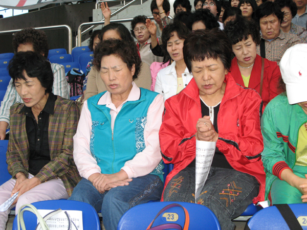 부산 그래함페스티발을 위한 온천교회 "땅 밟기 기도회" 토요일 오후 4시30분 150여명의 온천교회 성도들의 뜨거운 기도의 열기로 아시아드 경기장을 가득 채웠습니다. 주님! 이 넓은 경기장을 새로운 영혼들로 가득 채워주시어 부산이 복음화의 도시로 바꾸어 주십시요! 오늘 우리들의 밟는 자국마다 복음의 씨앗이 돋아나기를 소원합니다.