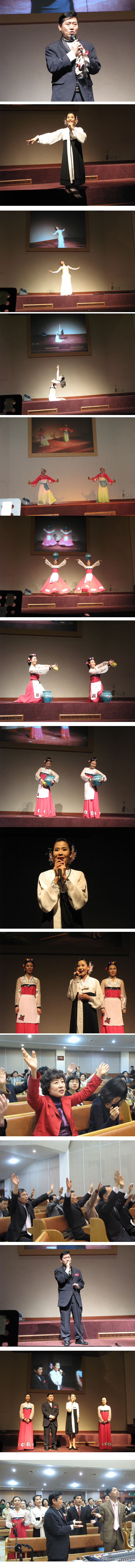 초청을 받아 "통일 노래" "복음찬 양" 탈북증인.전통민요.고구려무용"등으로