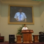 [새가족 섬김이 학교 수료식 실항]과 에클레시아찬양단.