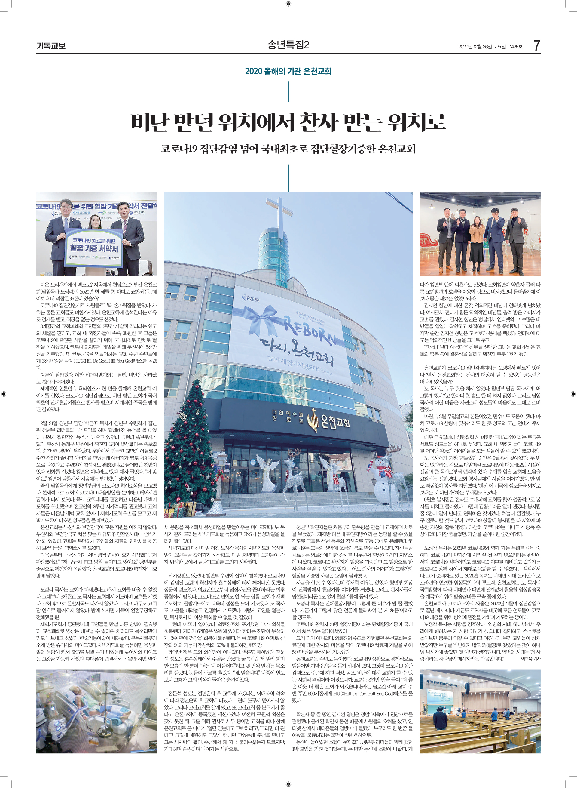 20201226 교계신문 '기독교보' 송년특집 (올해의 기관 온천교회) 기사 게재